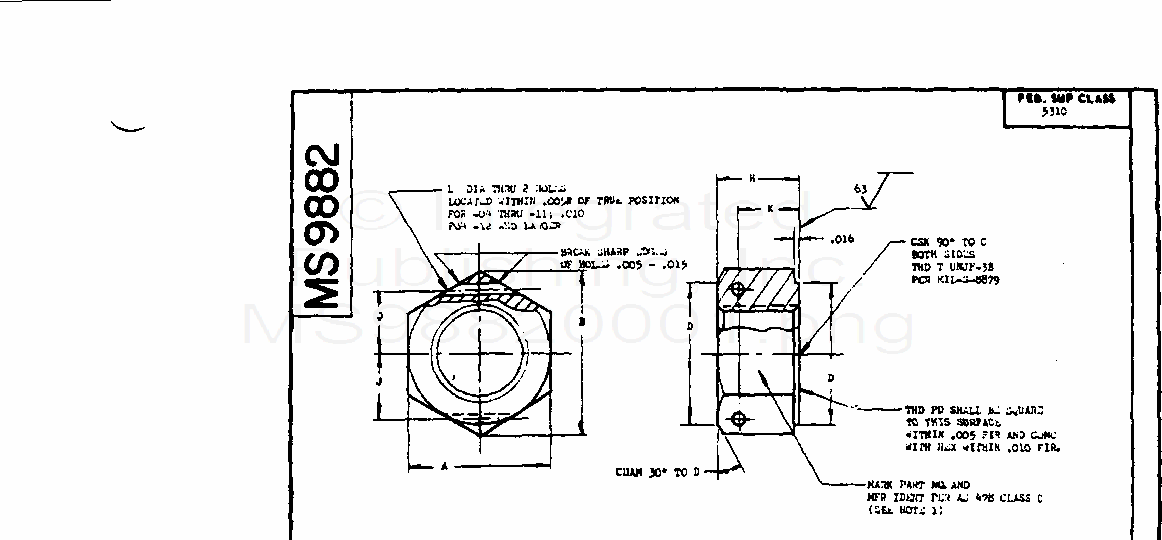 MS9882 Nut, Plain, Hex - Drilled, Ams 6322, Cadmium Plate Mil-S-8879 (S/S By Sae-As9882)